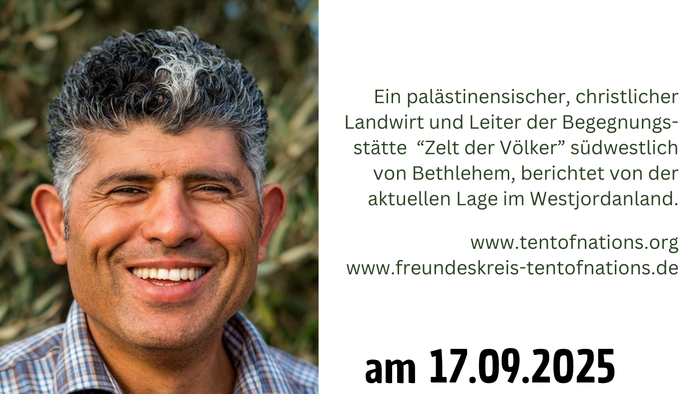 Ein palästinensischer, christl. Landwirt und Leiter der Begegnungsstätte "Zelt der Völker" südwestl. von Betlehem, berichtet von der aktuellen Lage im Westjordanland.
